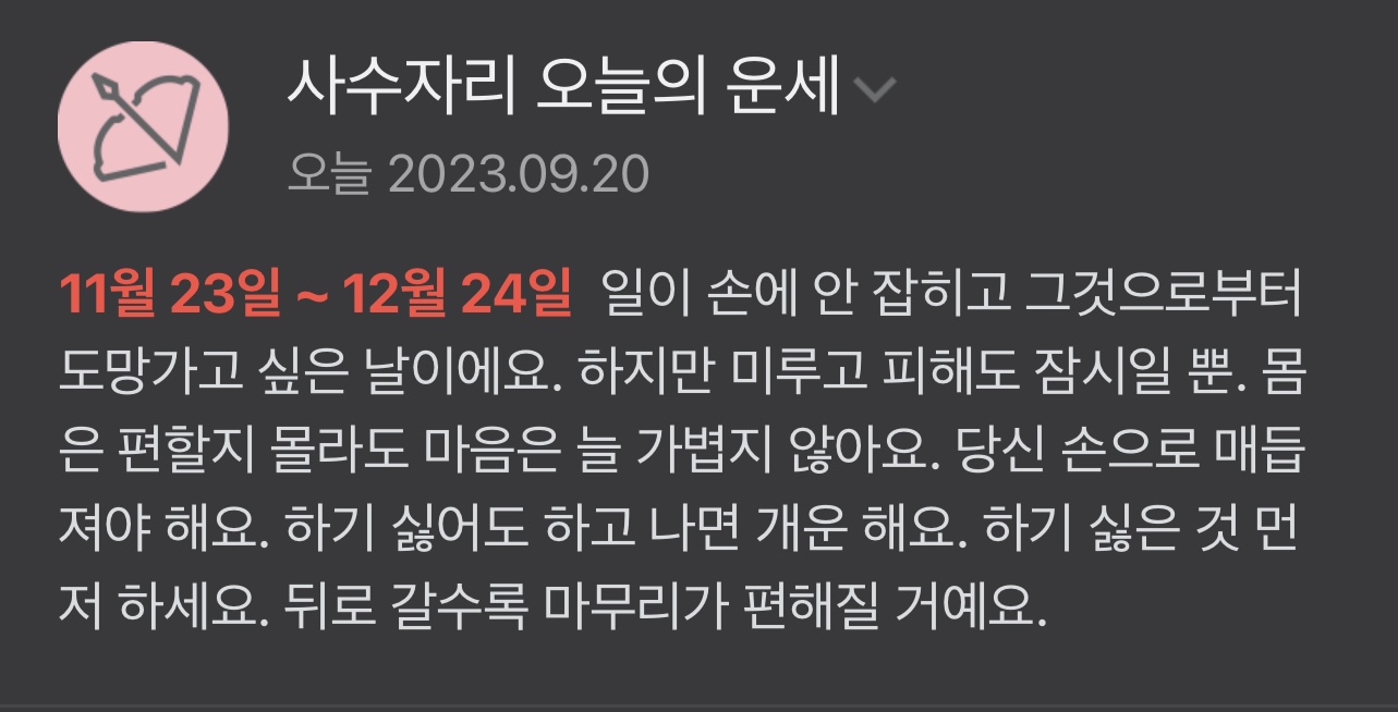 11. 사수자리 - 2023년 9월 20일(수)