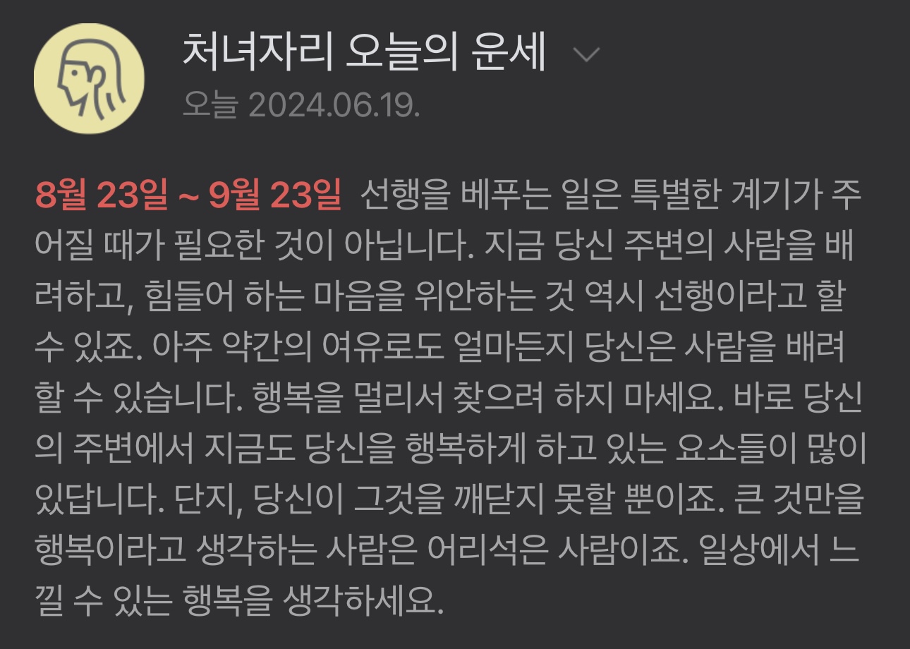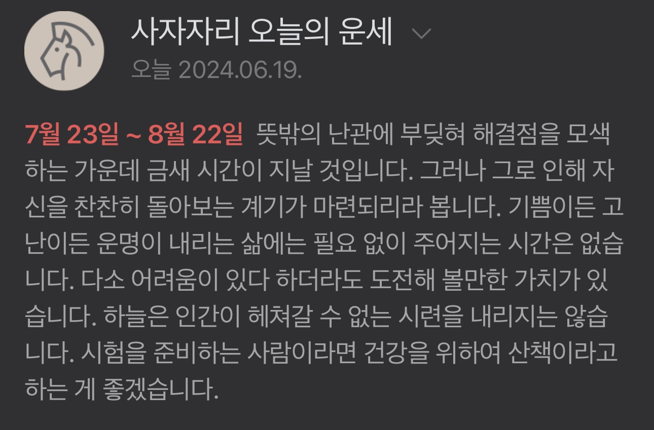 | 2024년 6월 25일(화) 한눈에 보는 오늘의 운세, 띠별운세 / 별자리 운세 - 매일경제, 신단수, 네이버운세 (19) | 2024.06.25 |