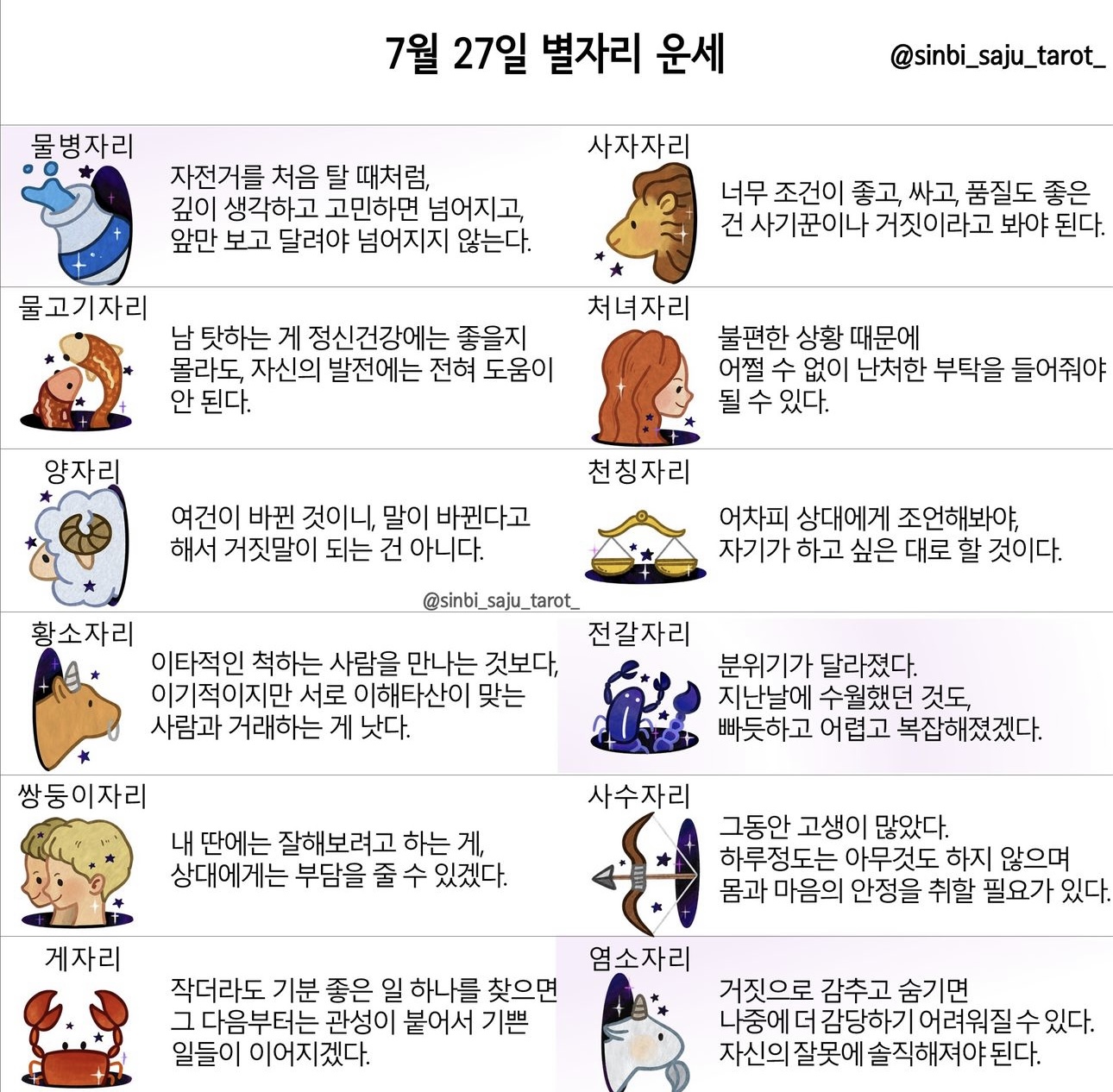 신비사주타로 별자리 운세 - 2024년 7월 27일(토)-28일(일)