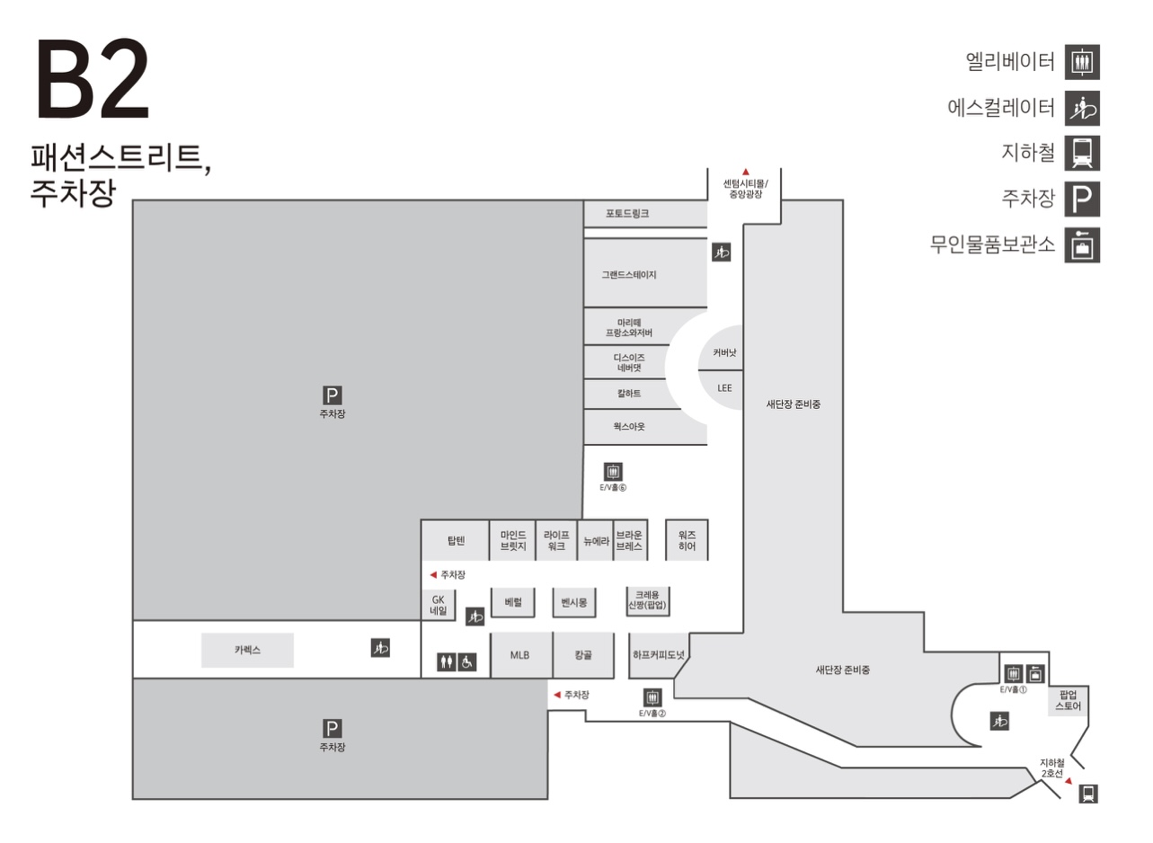 B2 패션스트리트/주차장 층 안내도